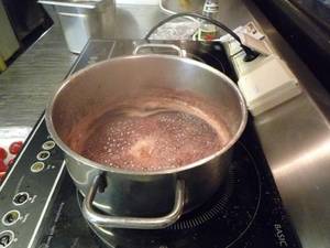 Die Gelatine in kaltem Wasser einweichen. Rotwein und Portwein auf die Hälfte reduzieren und die restlichen Zutaten dazu geben. Aufkochen, die ausgedrückte Gelatine zugeben und in kleine Halbkugelförmchen