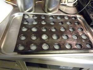 Die Couverture auflösen. Runterkühlen auf 26°C (Temperieren) und dann langsam auf 31°C erwärmen (mit Zuckerthermometer nachmessen). In einen ISI Sahnebläser füllen und mit zwei Patronen begasen.Nun in ein Gefäß blasen und kalt stellen.