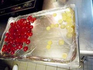 Die Gelatine in kaltem Wasser einweichen. Die restlichen Zutaten aufkochen, die ausgedrückte Gelatine zugeben und in kleine Halbkugelförmchen abfüllen und gelieren lassen.