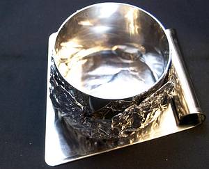 Creme auf vier Servierringe von max. 4 cm Durchmesser verteilen, die zuvor unten mit einer Doppellage Alufolie abgedichtet wurden.